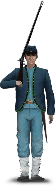 These two companies, in the Zouave fashion, also had an extremely distinctive uniform. Similar to those of the 11th NY Fire Zouaves, and the 72nd and 95th Pennsylvania regiments of Zouaves, the Baker’s Guard Zouaves all wore the shortened shell jacket, vest, chasseur trousers, and jambieres; however, there were slight differences. As the rest of the units were trimmed in red, the Baker’s Guard uniforms were all trimmed in green, symbolic of their predominantly Irish heritage. Also, they opted to wear a kepi hat, also trimmed in green - rather than the traditional fez.